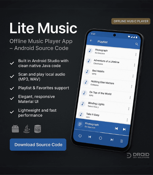 Lite Music – Offline Music Player App Source Code (Android + Java + SQLite)