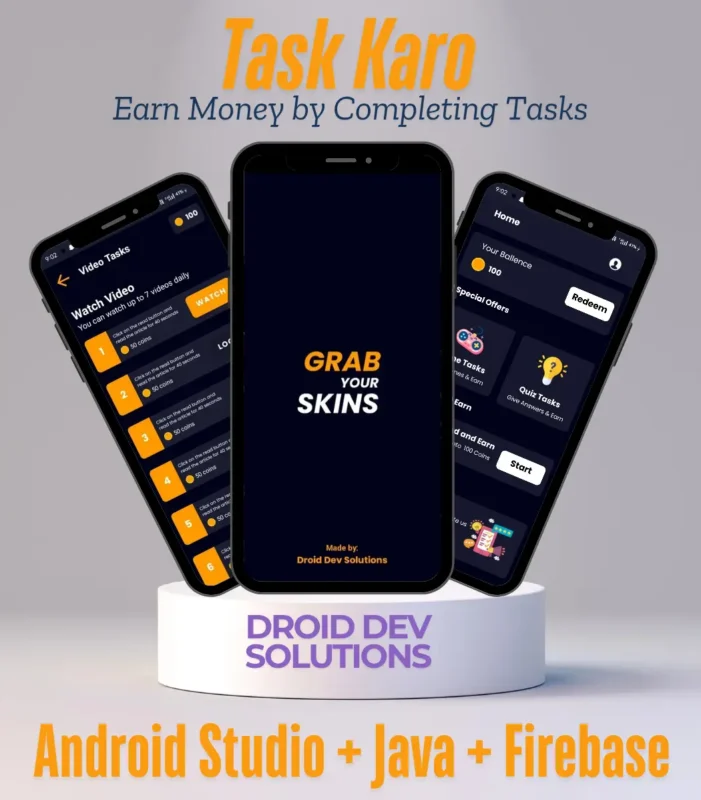 Task Karo – Complete Earning App Source Code Package | Android Studio + Java + Firebase