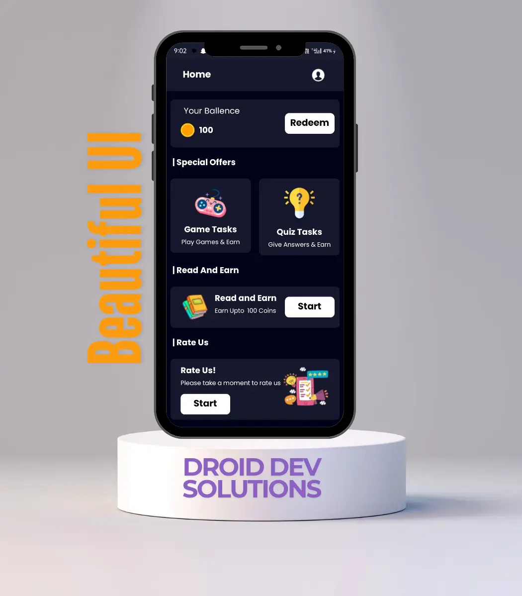 User-Friendly UI & Customization – The app has a clean, modern, and intuitive interface, making it easy for users to navigate. You can fully customize the UI, task types, and earning system according to your business needs.